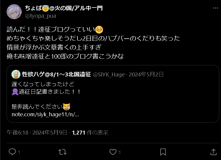 今思えば、それが遠征ブログを書くようになったきっかけだったのかもしれない。